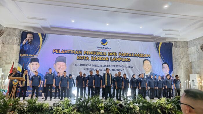 DEMOKRATIS.ID – Bandar Lampung – Dewan Pimpinan Daerah (DPD) Partai NasDem Kota Bandar Lampung resmi melantik jajaran pengurus periode 2025–2029. Pelantikan berlangsung di Gedung Wanita, Kota Bandar Lampung, Selasa (22/12/2025), dan dipimpin langsung oleh Ketua DPW Partai NasDem Provinsi Lampung, Herman HN, didampingi Sekretaris DPW Fauzan Sibron.