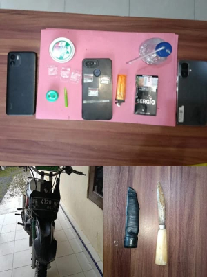 Dari pengungkapan tersebut, polisi mengamankan total tiga orang terduga pelaku beserta sejumlah barang bukti narkotika dan senjata tajam. Mereka masing-masing berinisial YK (36), warga Jabung, Lampung Selatan, serta SA (45), dan EH (26), warga Candipuro.